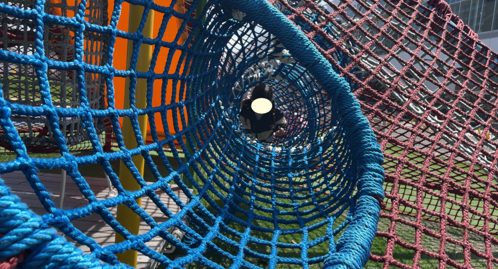 こんな感じでネットの中にトンネルがありました。ただ、あまり大きな遊具ではないので、小学校低学年くらいまでの子供向けかも。
