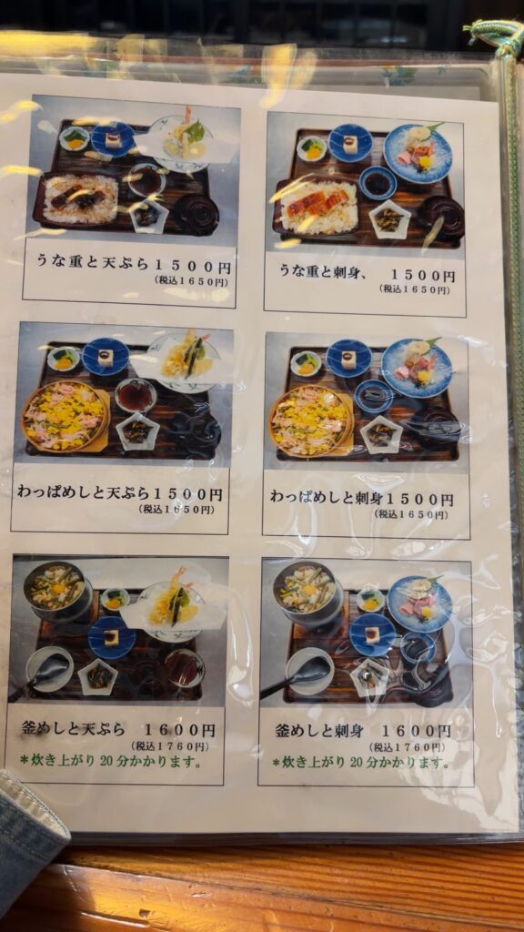 できれば天ぷらや刺身も食べたい・・・