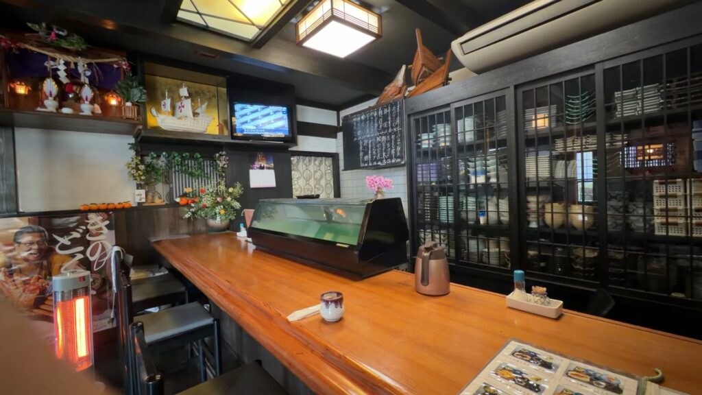 八十船さんの店内は広めで、座敷席が多くあります。カウンター席もありますが四つくらいしかなかったので、大人数向けのお店みたいです。