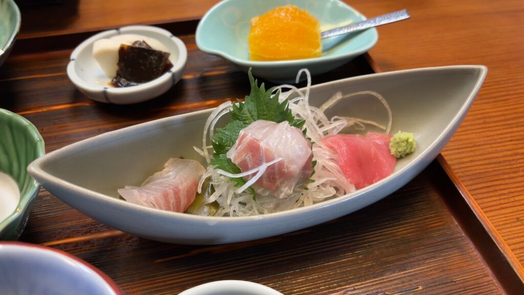 次はお刺身。五切れくらい入っていて、十分楽しめます。