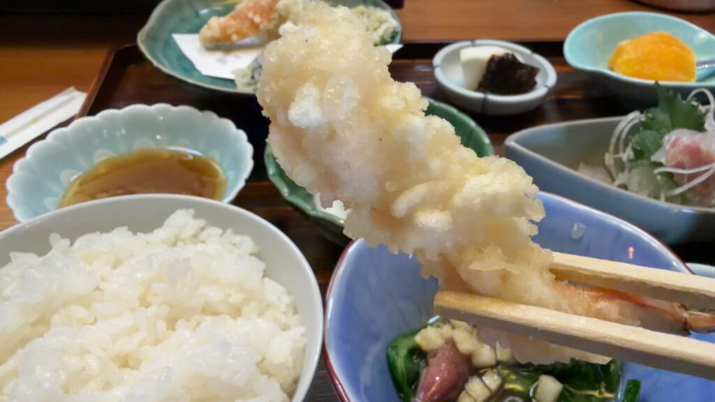 天ぷらと刺身が付いて1100円とリーズナブルです。
