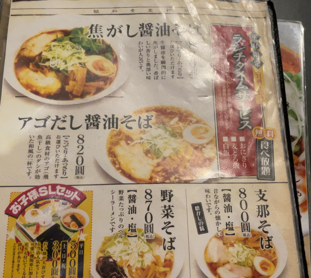 - 昭和食堂さんはラーメンの種類、おつまみが豊富