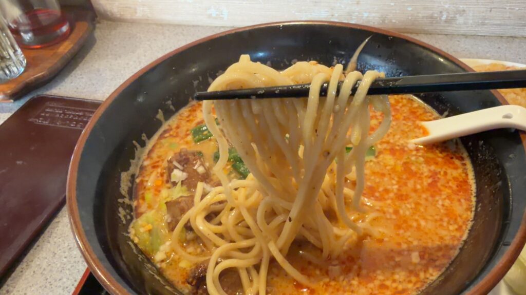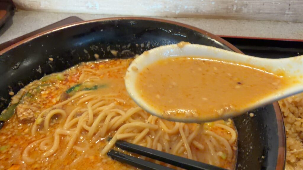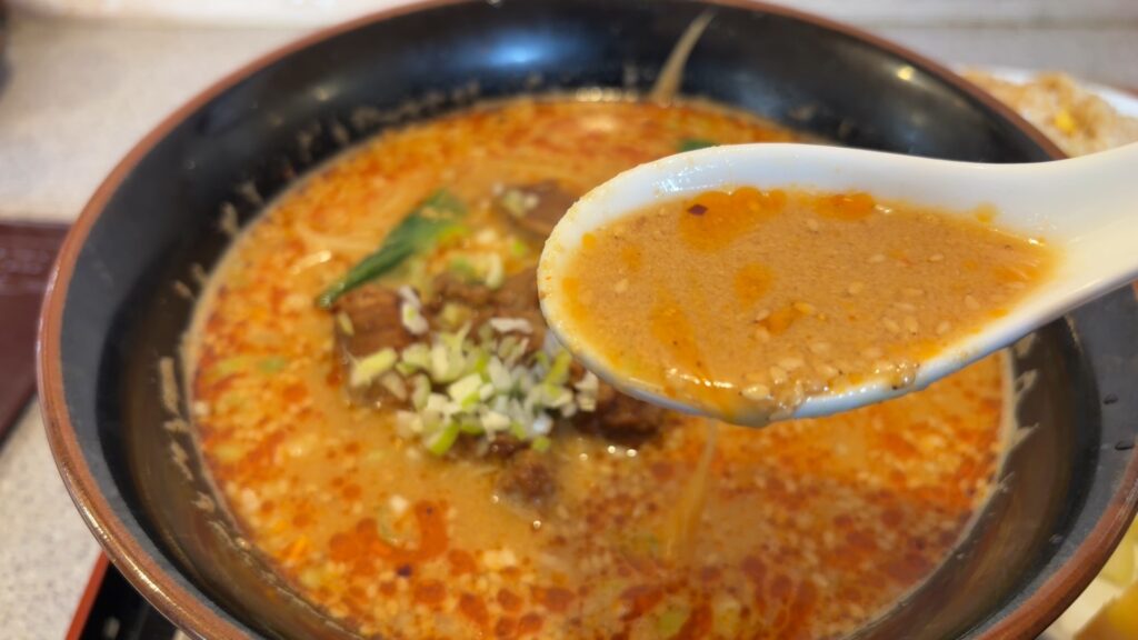 スープは胡麻が効いていて少し酸味がある美味しいやつです。