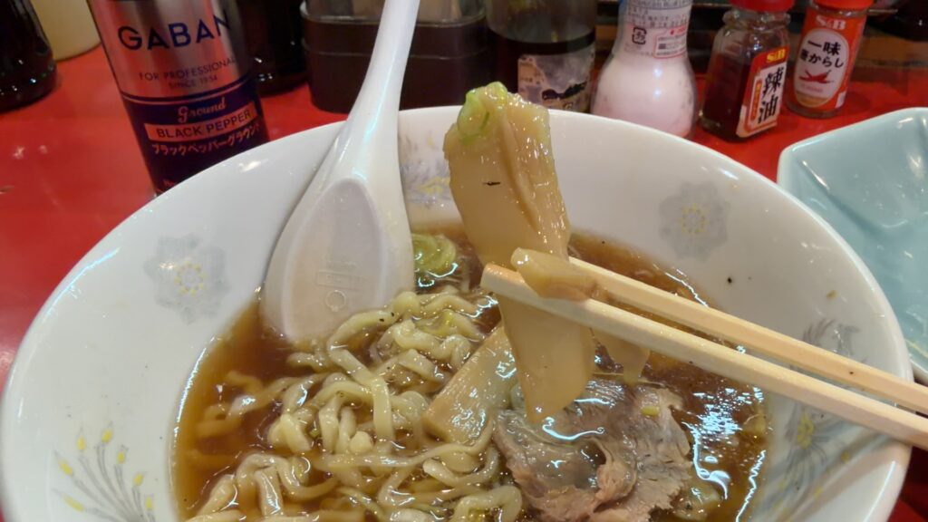 こういう昔ながらのラーメンの麺で中太麺は珍しいと感じるのは私だけでしょうか。
