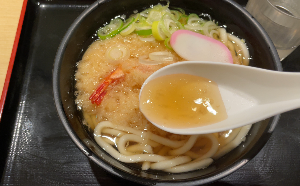 衣の甘い味が合わさって、出汁の効いたつゆがガツン系にパワーアップします。