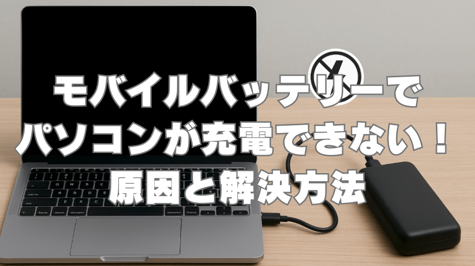 モバイルバッテリーでパソコンが充電できない場合、いくつかの原因があり、それぞれにちゃんとした対処法があります。すぐに修理に出したり、新しいものを買い替えたりする前に、まずはこの記事で紹介するポイントをチェックしてみてください。意外と簡単なことで解決するケースも多いです。
