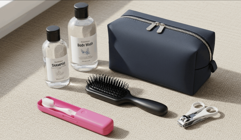 - 洗面用具: 歯ブラシ、歯磨き粉、洗顔料など、普段使い慣れているものを持参します。トラベルサイズのセットを利用すると、荷物がコンパクトになります。
