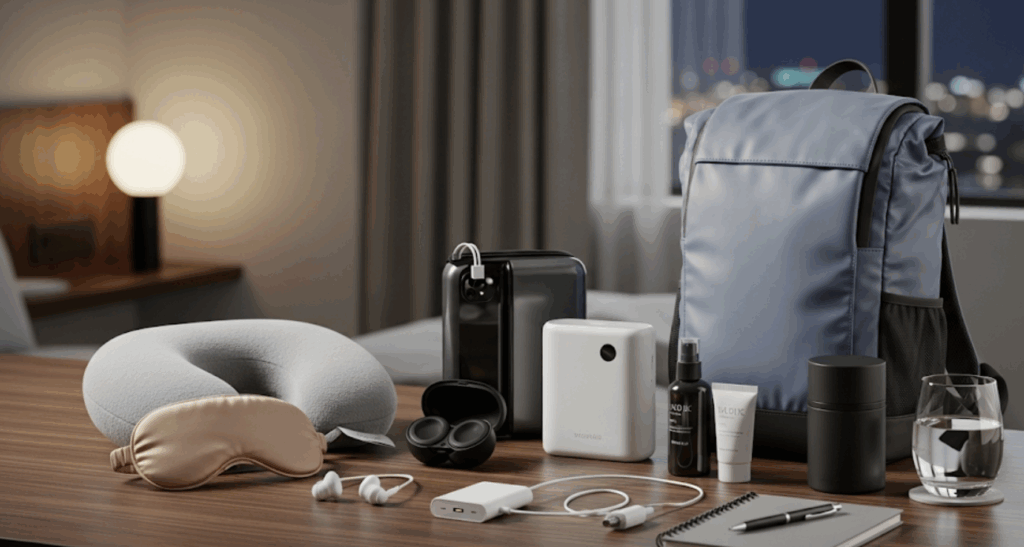 基本の持ち物に加えて、あるとさらに出張が快適になる物もいくつかあります。これらは必須ではありませんが、状況に応じて準備することで、よりスムーズに、そしてリラックスして過ごすことができます。