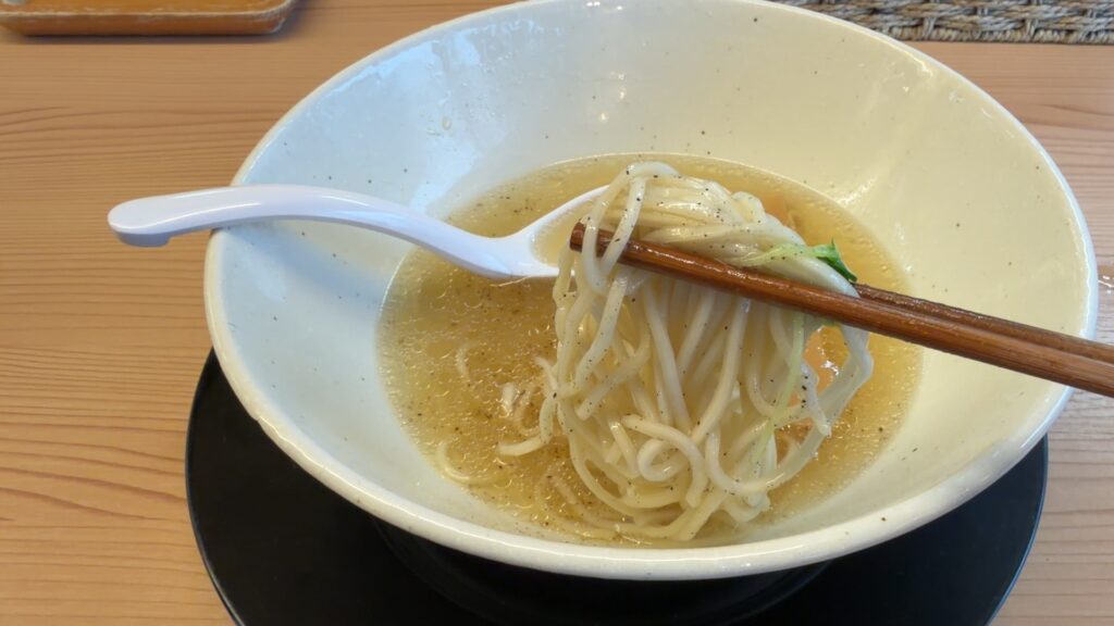 透き通った透明なスープ。てしおさんのラーメンは、美味しいラーメンが持っている雰囲気が現れています。