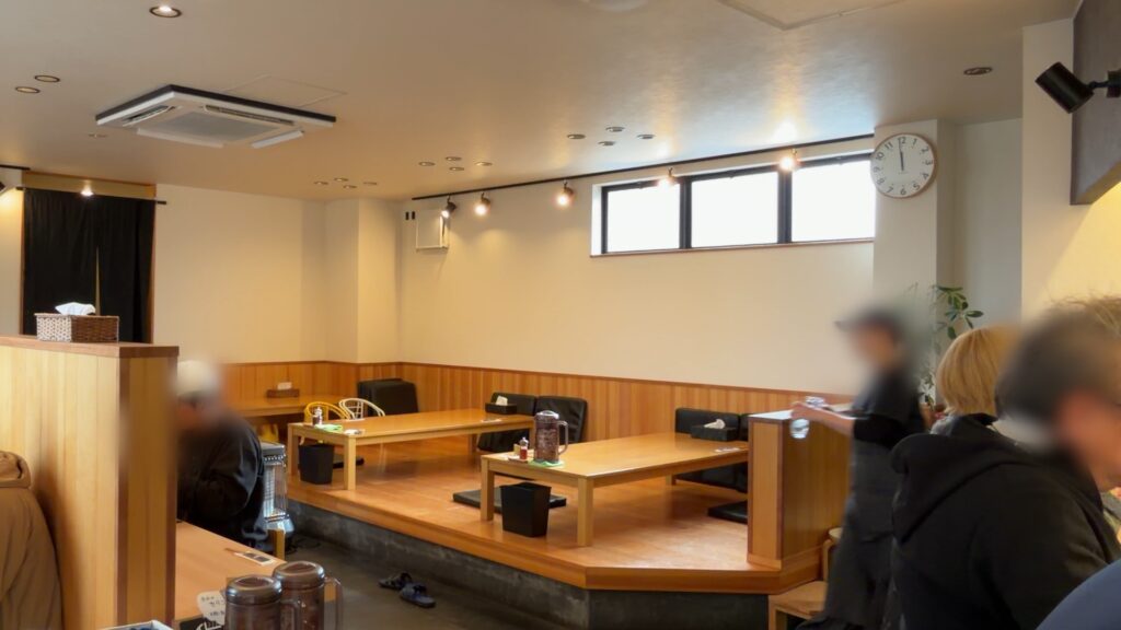 席数は、カウンター席が9席、小上がりタイプのテーブル席が三席あります。