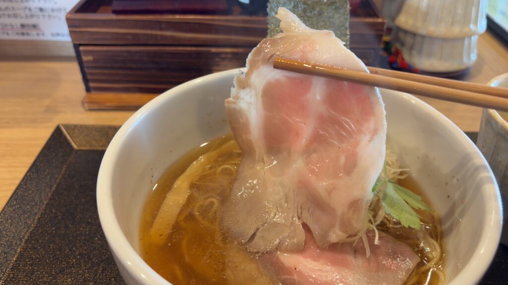 これ、ラーメンのチャーシューなんですよ!?わたしの知ってるラーメンではなく、これはフレンチ料理店で出てくるラーメンといっても過言ではないです。