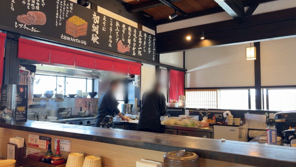 鯛そば真源さんの店内は、ラーメン屋さんのようでそうじゃない、ラーメン屋さんと料亭が合体したような雰囲気です。