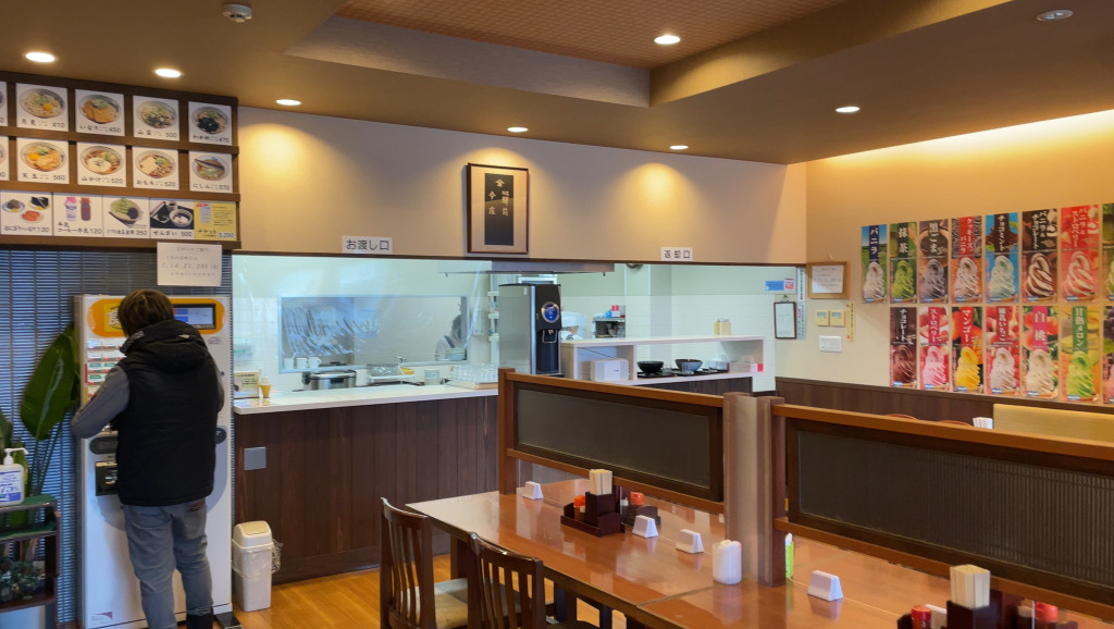 今庄さんは食券制です。注文口横にある券売機で食券を購入します。