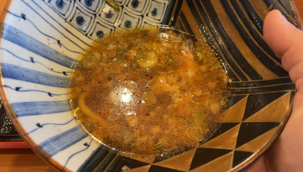 衣とスープの相性が抜群なので、ぜひ天ぷらを頼んでみてください。