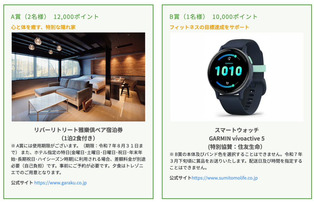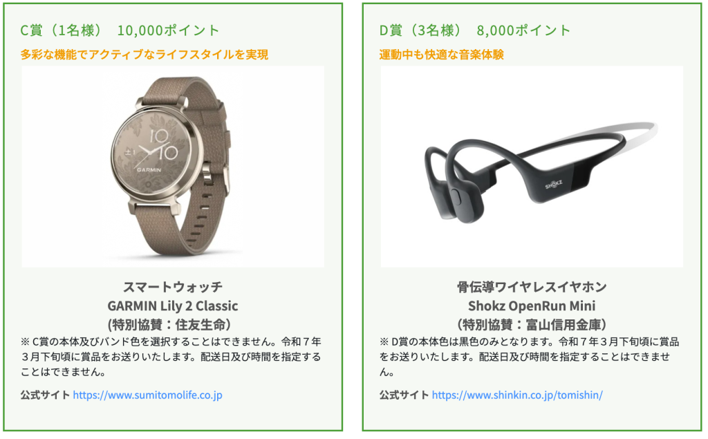 とほ活ポイントで応募できる景品は月によって異なり、令和7年2月はこちらのような景品が当たります。