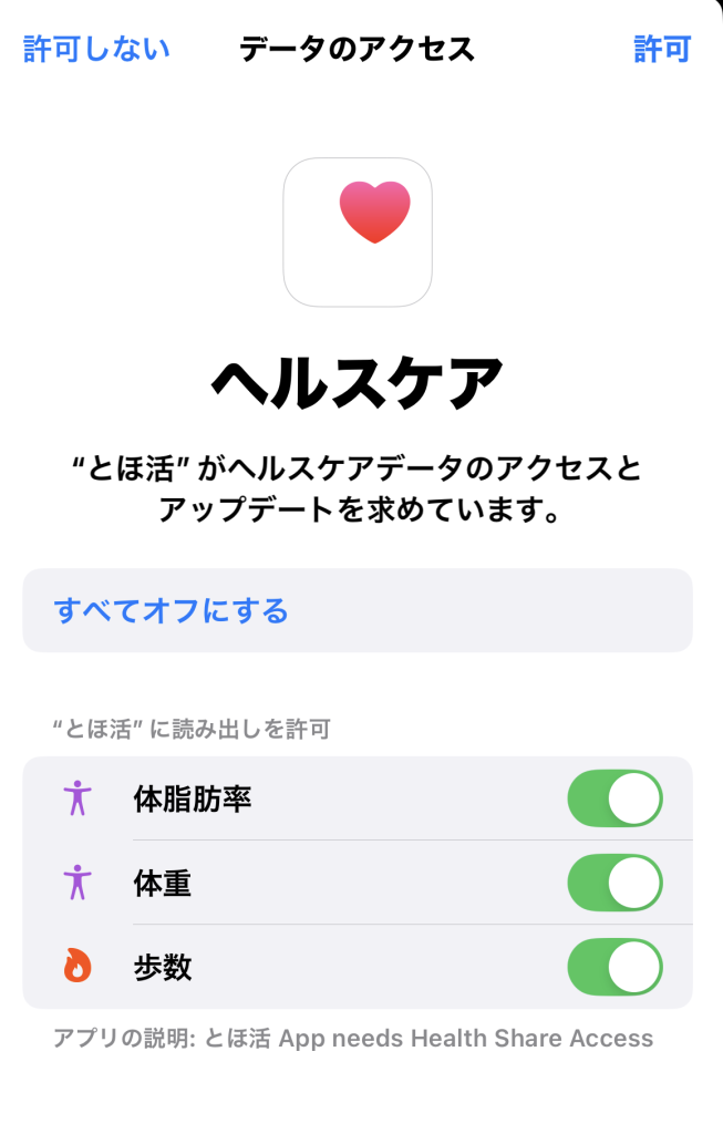- Step3ヘルスケアのアクセスを許可する(iPhoneの場合)
