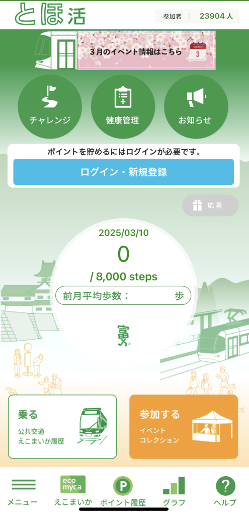 とほ活アプリでイベントに参加するとポイントがもらえます。