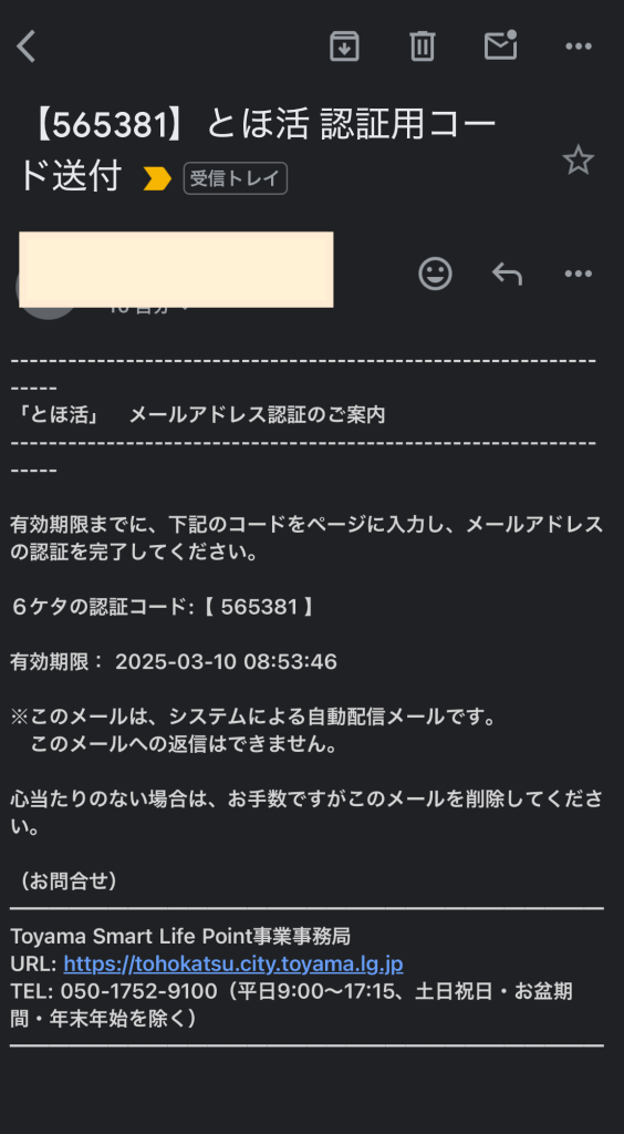 - Step4認証コードがメールに届くので入力する