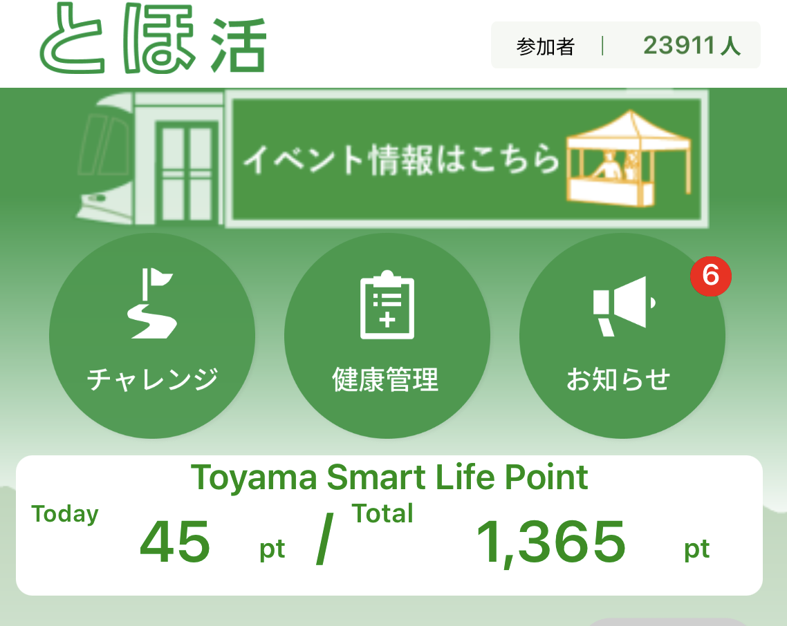 とほ活は、富山県が主体として提供している活動で、普段の生活の中でポイントを貯めることができます。