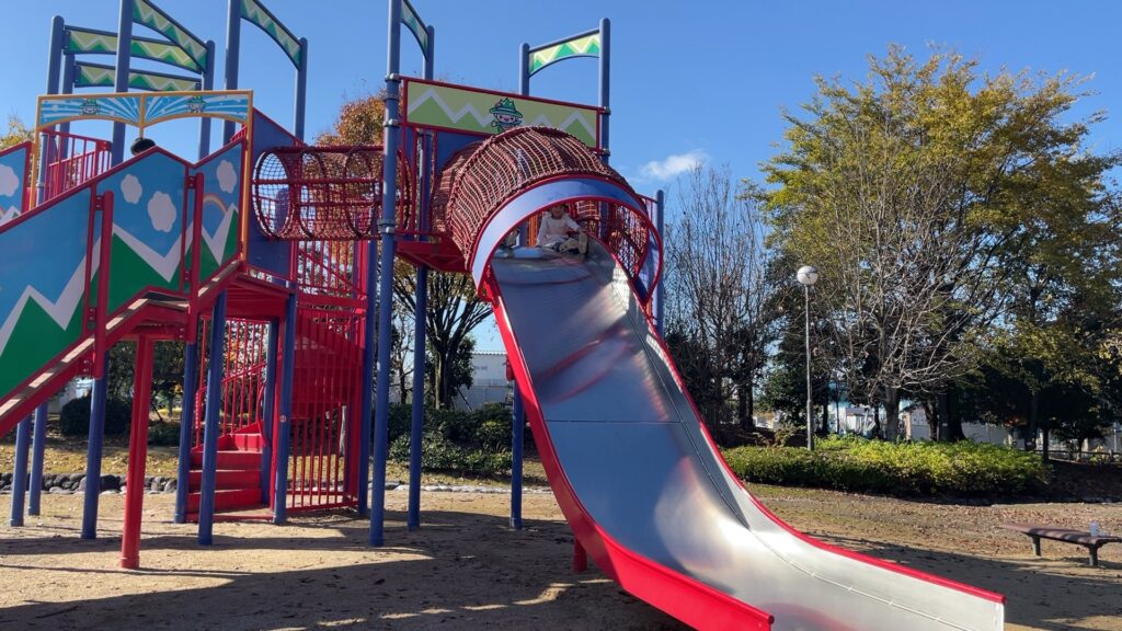 公園によっては、滑り台が全然滑らないものがありますが、こちらの滑り台は、その角度からアトラクションのような楽しみ方ができます。大人の私でも楽しかったです。