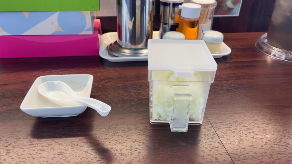 無料の生玉ねぎが意外に家系ラーメンのスープと相性が良く、新発見できました。