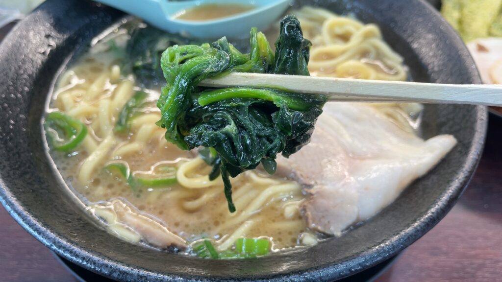 ほうれん草。こちらも家系ラーメンで定番の具です。
