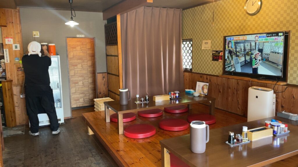 中華そば秀光さんの店内のBGMは、おしゃれな音楽ではなく、TVのバラエティ番組の音です。むかしのラジオのようなBGMのような雰囲気が味わえます。