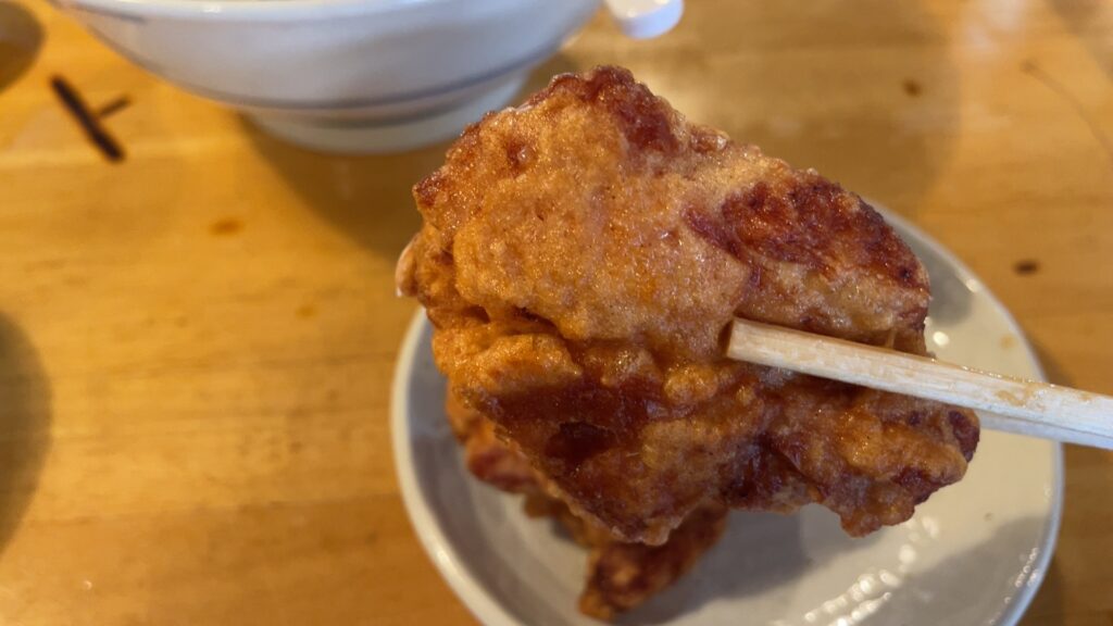 ラーメン単体だと、ものすごい高評価ではないですが、唐揚げの大きさやふりかけなどの追加要素で、総合的に満足度が高くなるお店です。
