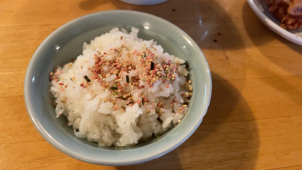 唐揚げも大きかったですし、卓上にふりかけがおいてあるのも嬉しいポイントでした。