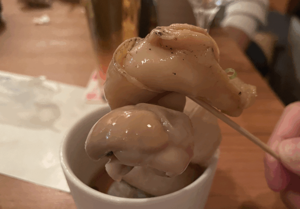 ラーメンスープをベースに、牛すじを柔らかく煮込んだ一品で、お酒のアテに最高と人気です。