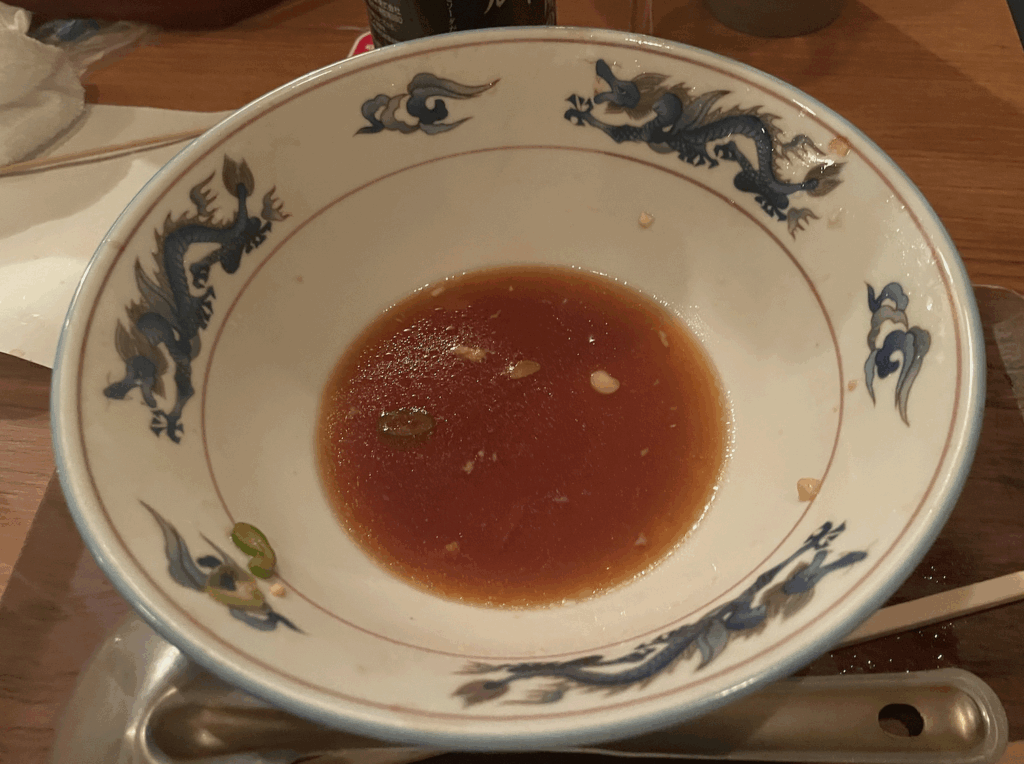 スープは黒目。スープはレンゲではなくおたまで飲むスタイルです。