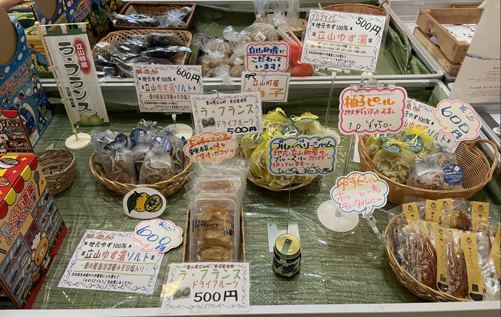 富山県立山町の特産品やお米なども販売されています。種類は多くありませんが、立ち寄った記念に地元のお土産を購入できます。