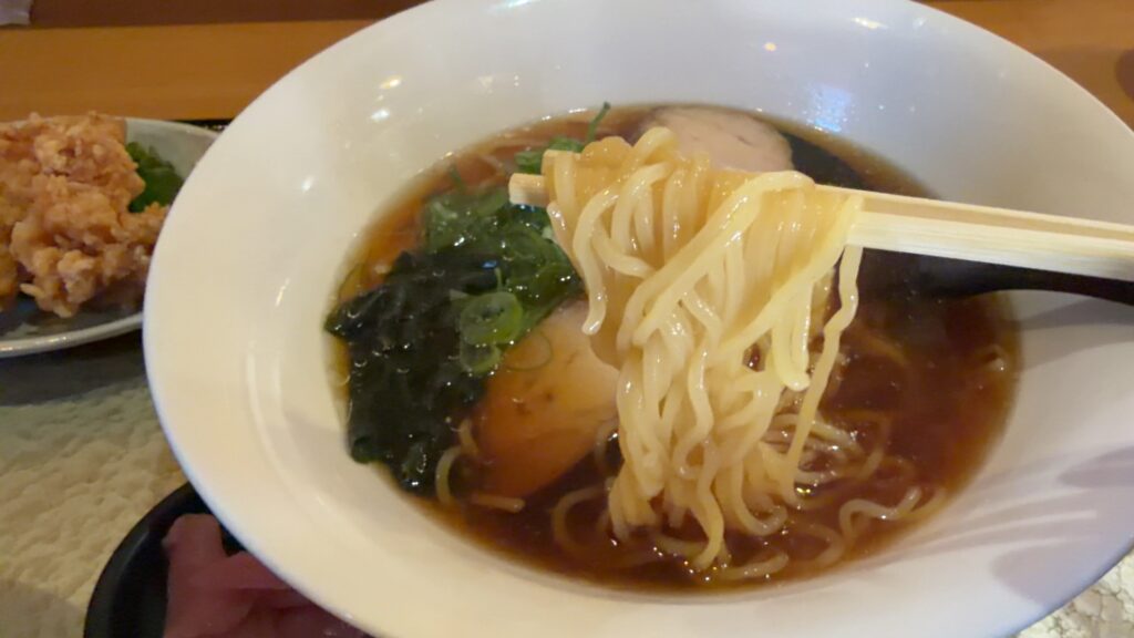 麺はツルツル系。食べるのに負担なくするすると胃に入っていく麺です。