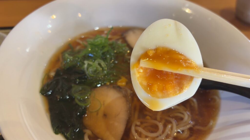 卵。ちゃんと半熟。茹で加減が上手です。