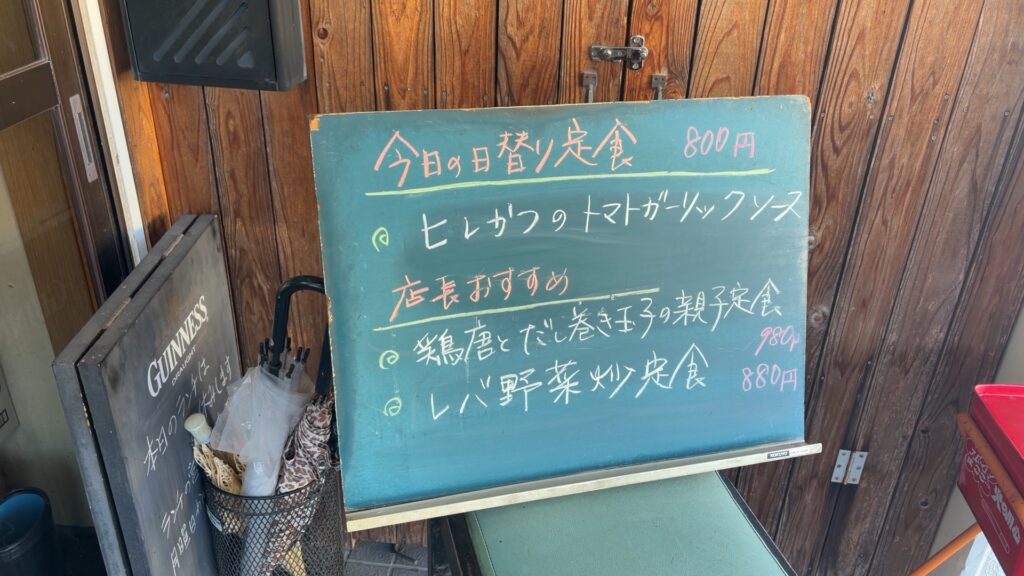 日替わり定食は、上のような感じで、店内入り口の黒板に書いてあります。