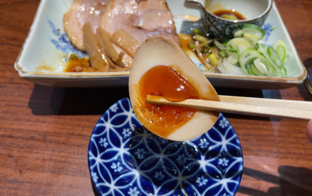 煮たまごにも、たれをかけていただきます。いい感じで半熟でトロトロです。