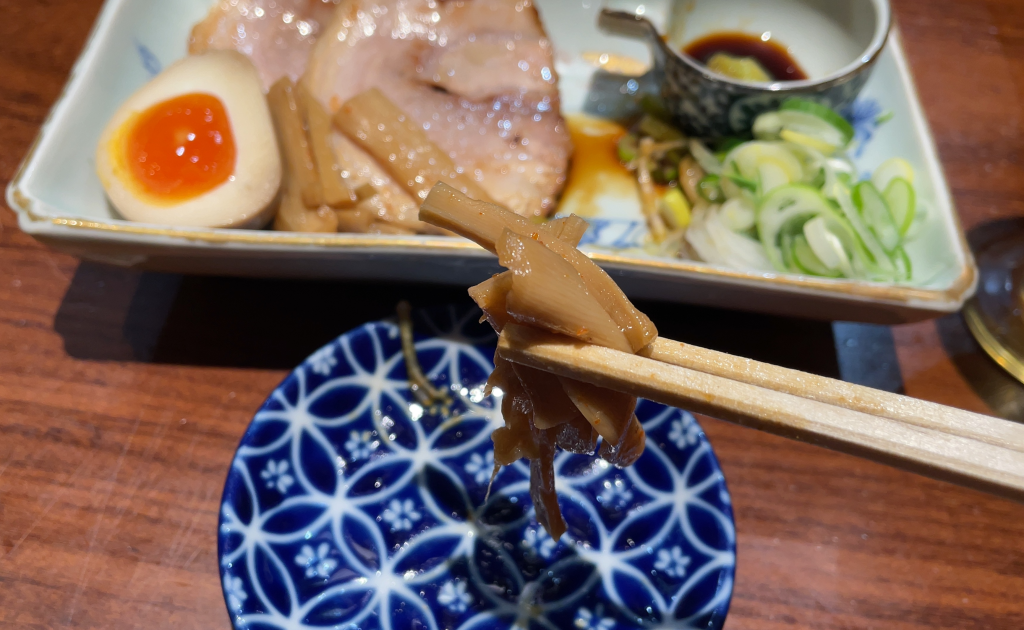 メンマとネギは一緒に食べるのがオススメです!メンマのコリコリ食感とネギのシャキシャキの食感が組み合わさってウマシ!!