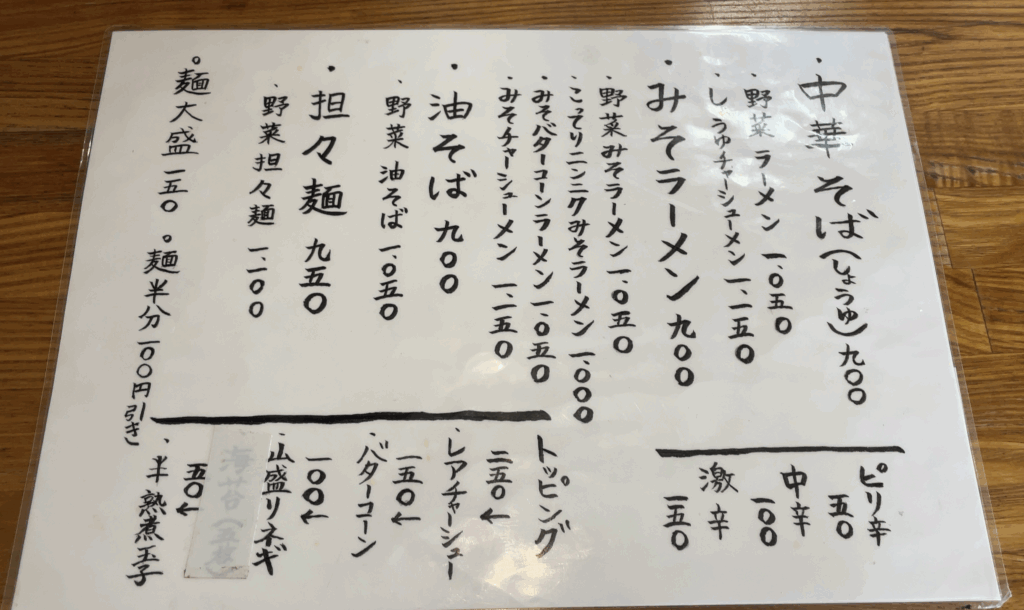 トッピングの種類も豊富です。また、味噌ラーメン以外にも、醤油ラーメンや担々麺、油そばまでラインナップが幅広いラーメン屋さんです。
