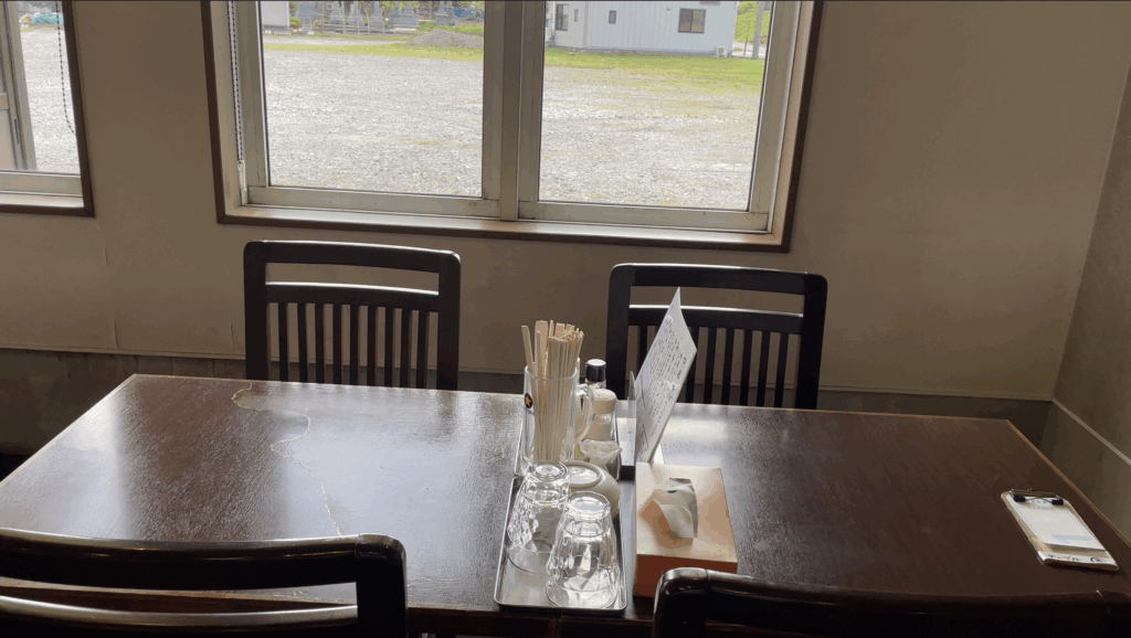 友人や家族との食事に最適な、ゆったりとしたテーブル席ももちろんあります。美味しいラーメンを囲んで会話が弾む、そんな楽しみかたもできる席です。