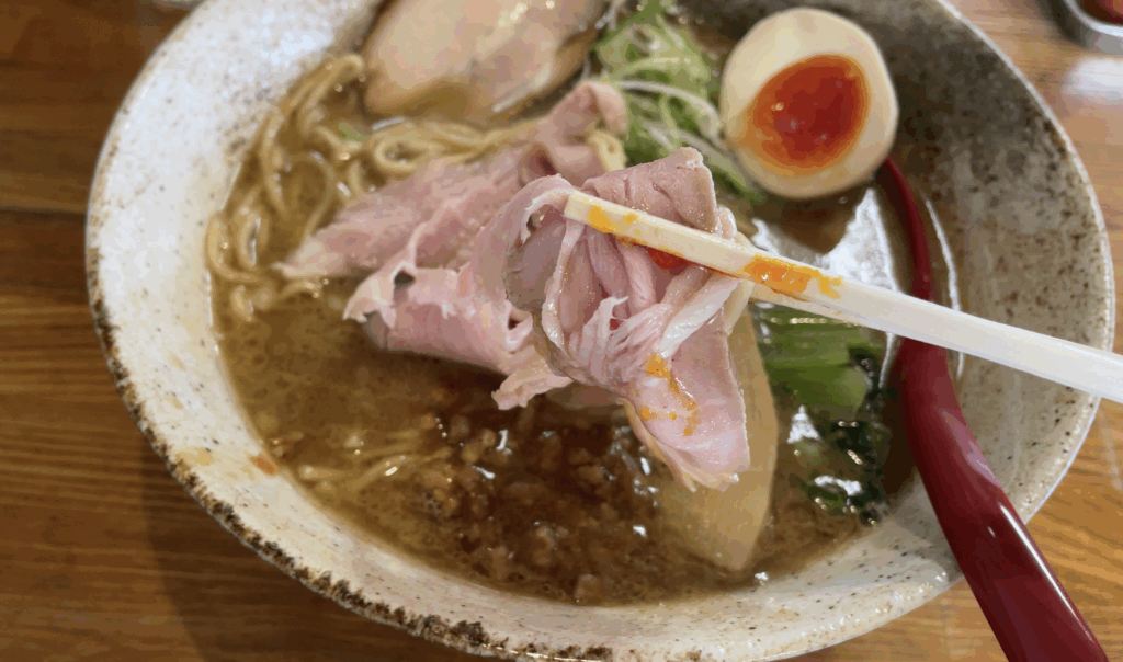 一つは、豚肉の旨味がぎゅっと凝縮された、定番の柔らかいチャーシュー。もう一つは、しっとりとした食感が特徴の鶏ハムのようなチャーシューです。それぞれ異なる肉の旨味と食感が楽しめることで、最後まで飽きさせない工夫が凝らされています。