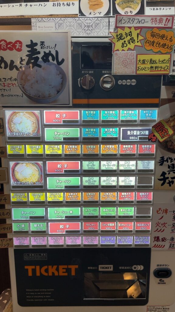 唯一残念なのは券売機が電子マネーに対応していないこと・・・電子マネーに対応してくれれば言うことはないですが、募金制などのシステムがあるので、結局は現金が必要。この券売機のおかげで価格高騰が抑えられていると考えましょう。