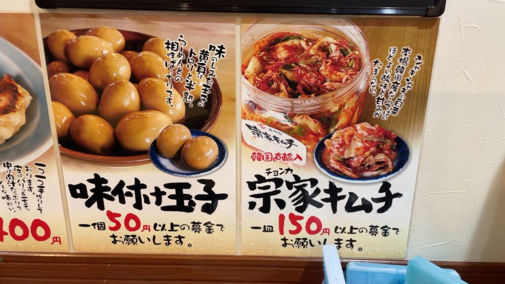 また、私は食べたことがチョンカキムチも食べることができます。こちらは150円以上の募金ですが、SNSなどをみてると美味しいと評判です。