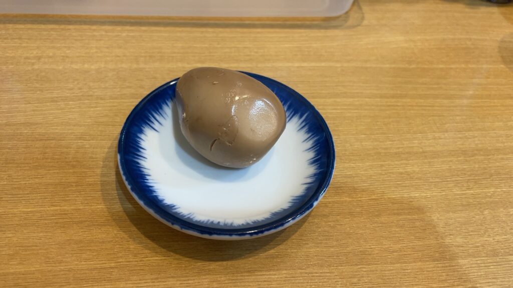 ラーメンが来る前に味付け玉子をとって、席で待ちます。