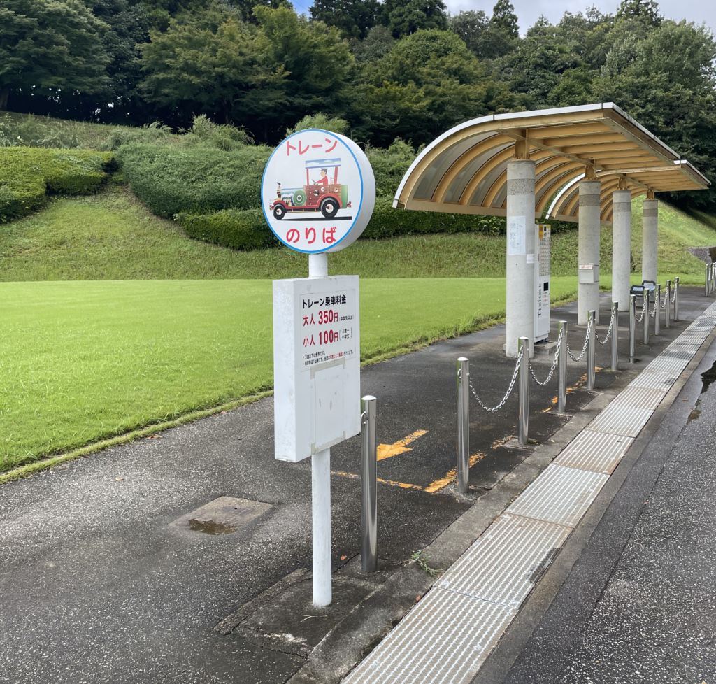 たいこうやまトレーン園内各所にある、トレーンのりばからのります。こちらは入り口近くのトレーンのりばです。