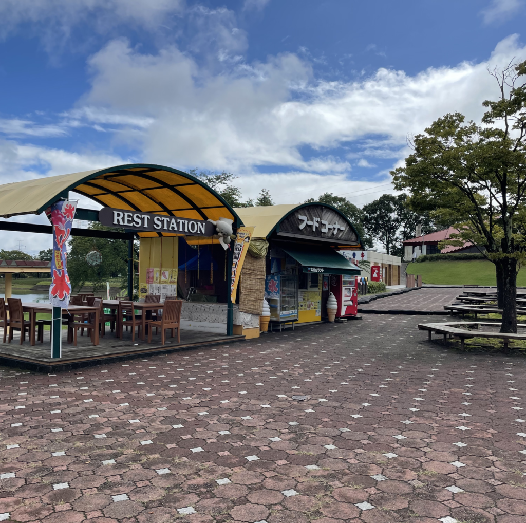 太閤山ランド入り口には簡単なフードコーナーがあります。こちらではフランクフルトや唐揚げ、ソフトクリームなど簡単な飲食が可能です。園内の飲食店はここしかないので、太閤山ランドに訪れるときは、お弁当持参かここでの食事になります。飲食するスペースも用意されているので目の前の池を眺めながら食事ができます。
