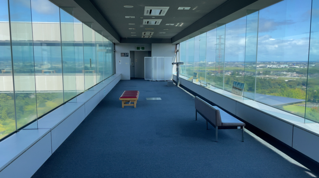 太閤山ランドの頂上には、富山県を見渡せる展望台があります。四方向を見渡すことができる展望台で、望遠鏡も設置されています。中はこんな感じです。