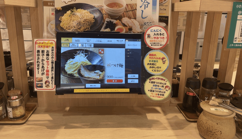 • タッチパネルでスムーズに注文でき、セット割引も自動適用されます。