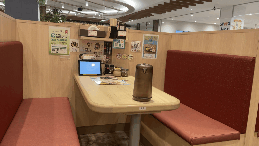 席に着くと、まずはタッチパネルで注文します。写真付きで分かりやすく、セットメニューなども自動で割引が適用されるので、スムーズに注文できます。