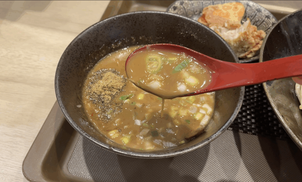 つけ麺のスープは、魚粉の風味がしっかりと感じられます。濃厚でありながらもしつこくなく、麺によく絡みます。魚介系のスープが好きな方には特におすすめです。