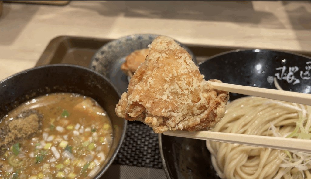 この日は6月ということもあり、唐揚げハーフがお得なセットになっていました。つけ麺だけでは物足りない方も、サイドメニューが充実しているので安心です。